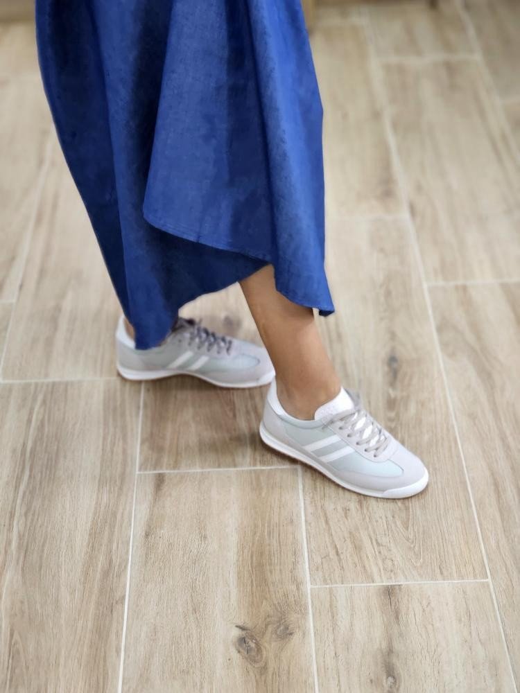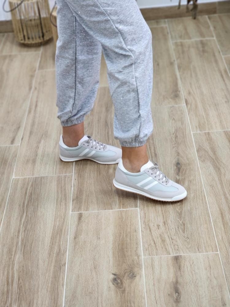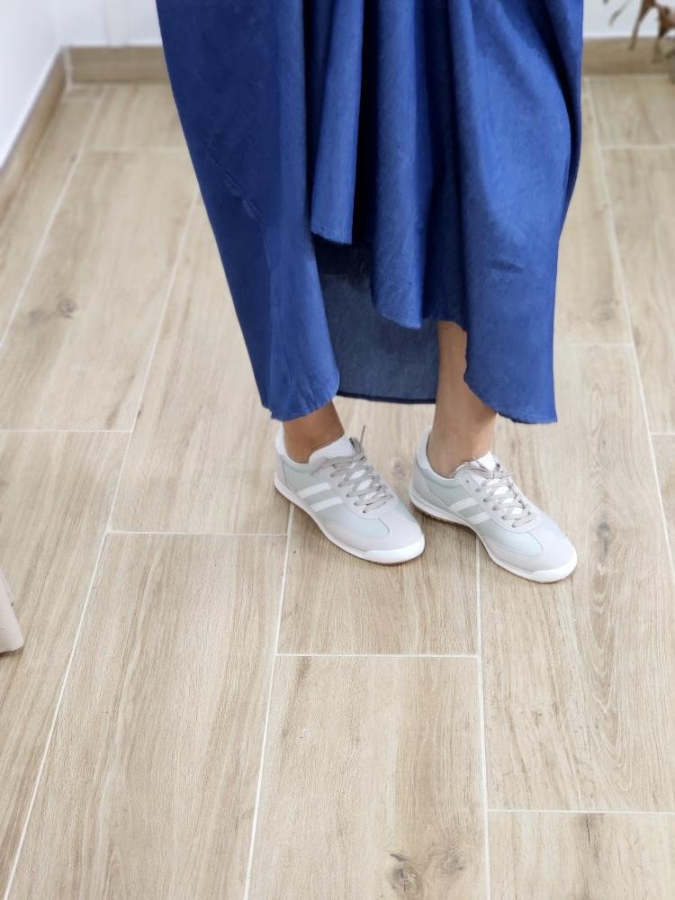 Deportiva en tonos suaves en turquesa y gris. Muy cómoda y talla bien.