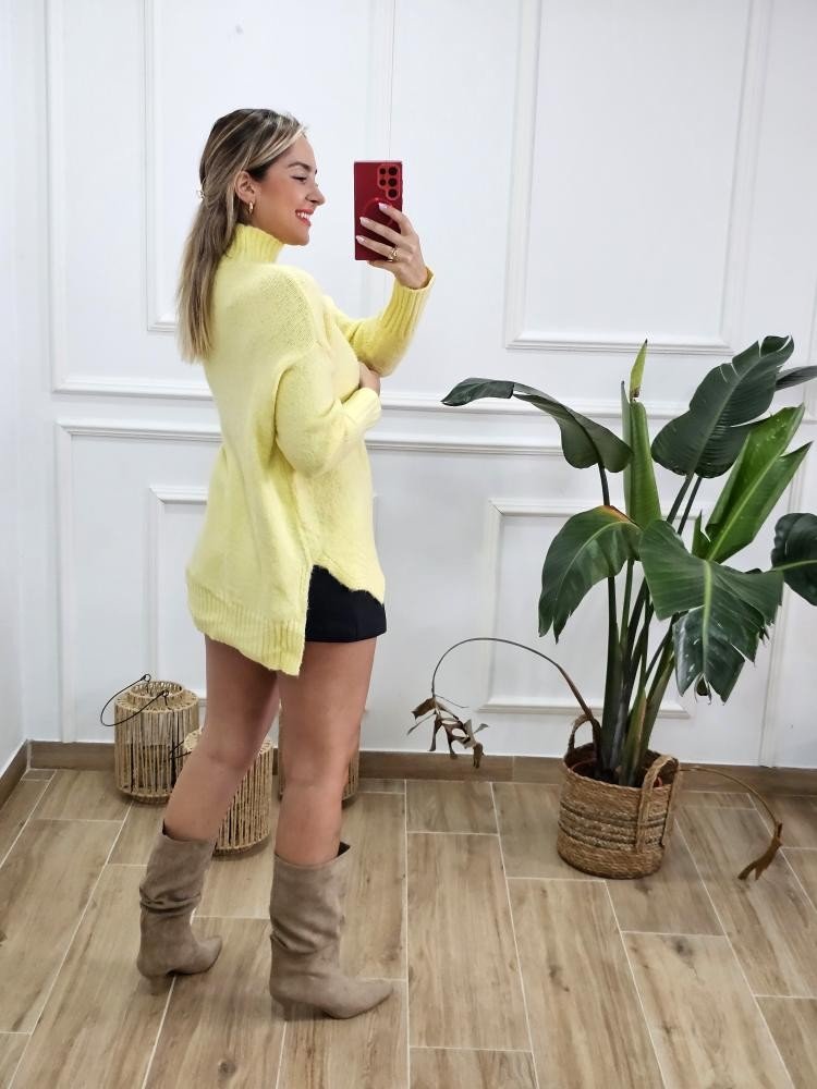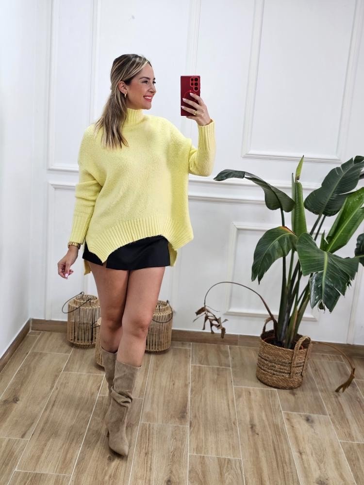 Jersey en tejido de punto de manga baja y ligero cuello. Detalle de abertura en ambos laterales y corte asimétrico. Talla única y único color.