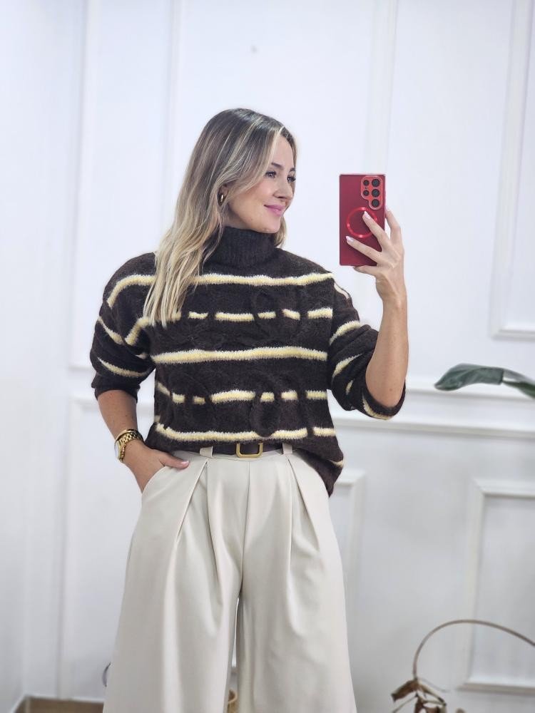 Jersey de punto. Contiene cuello vuelto. Detalle de bordado en la zona delantera. Talla única y único color.