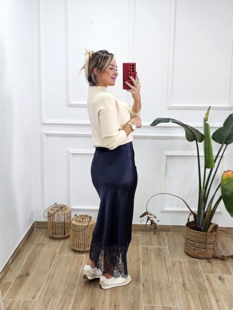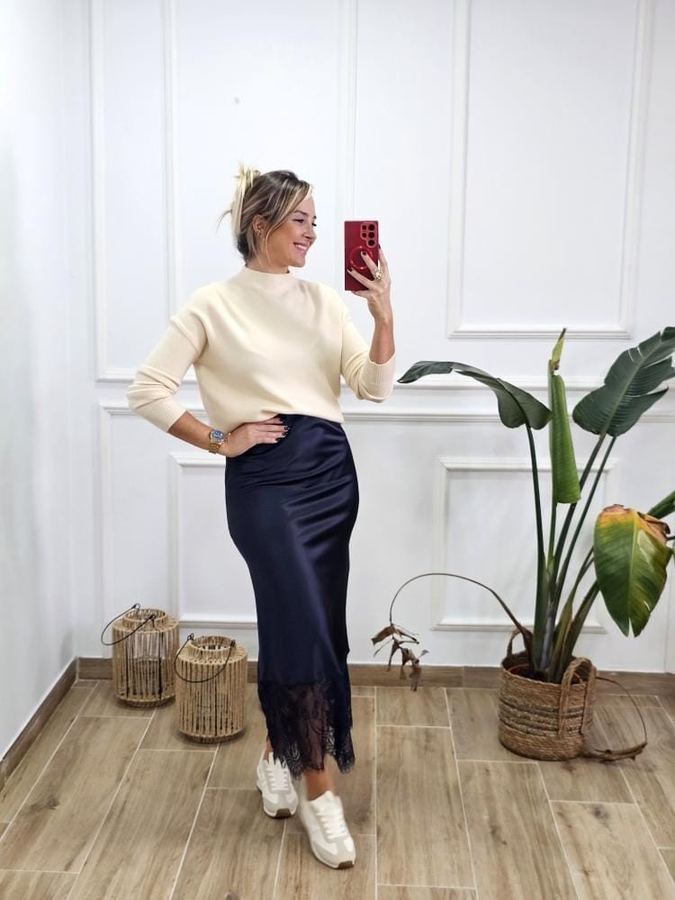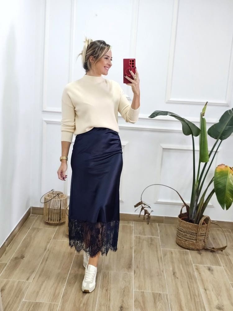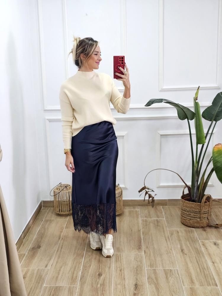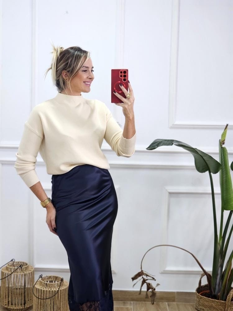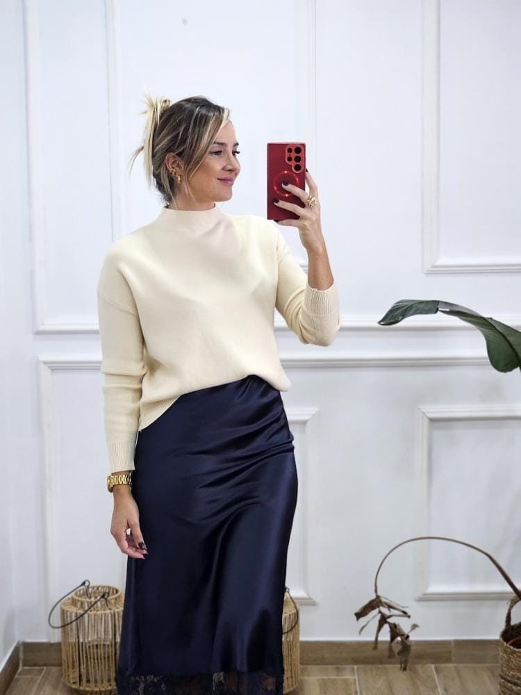 Jersey de punto. Cuello medio y manga baja. Contiene pretina no rígida en la zona del puño y bajo de la prenda. Talla única y dos colores.