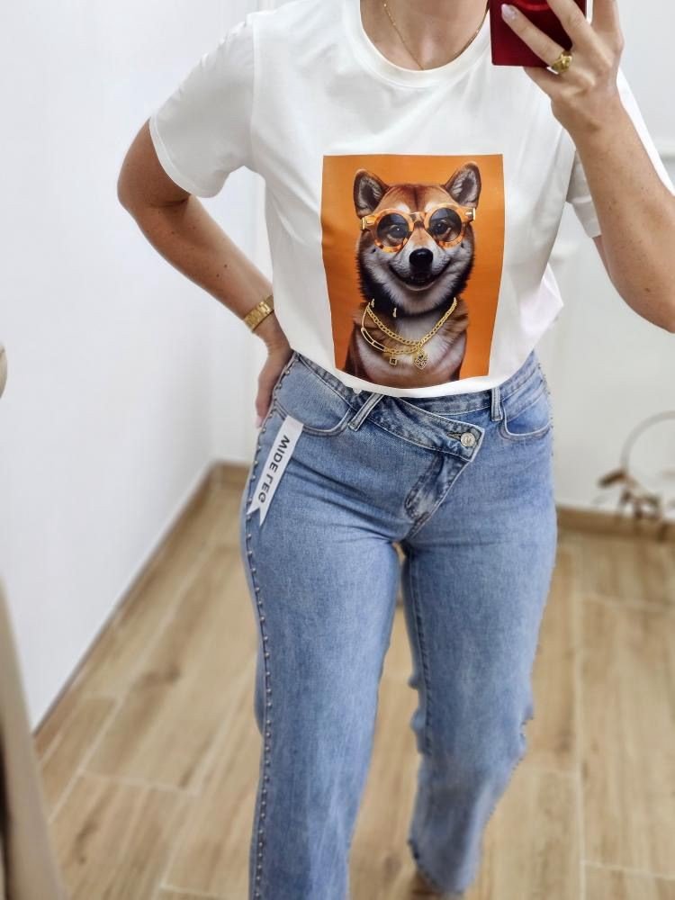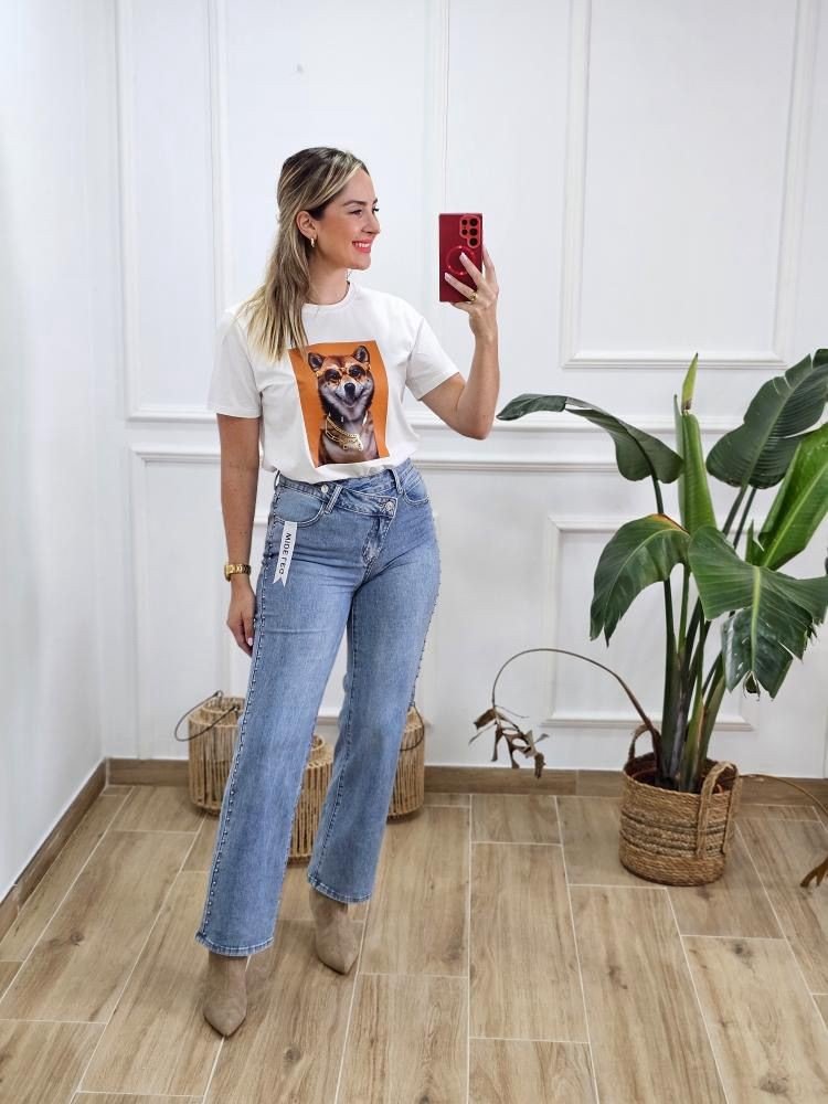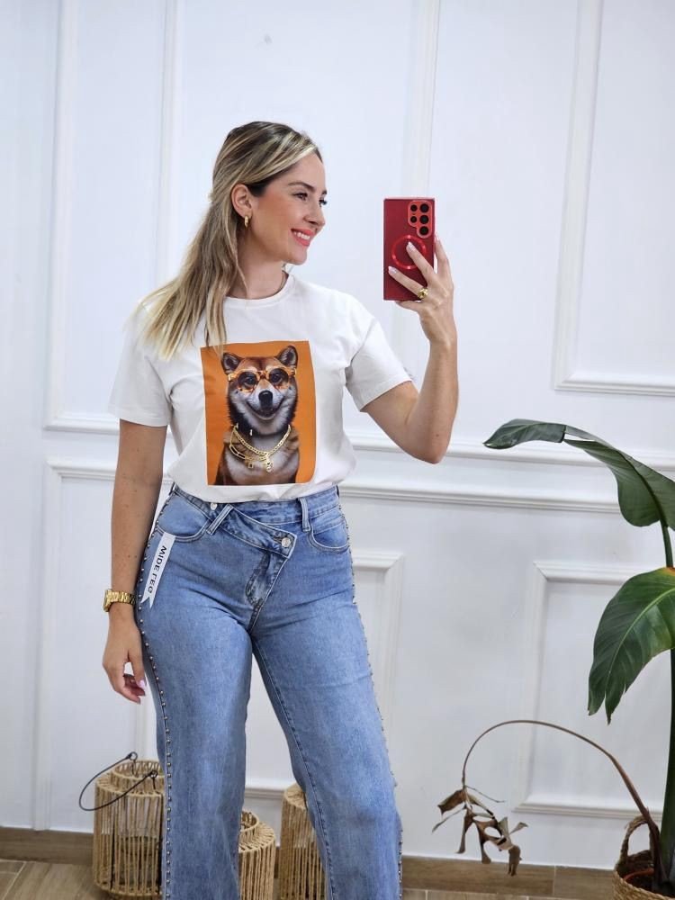 Camiseta en tejido de algodón. Contiene manga corta y cuello redondo. Estampado en la zona central. Talla única y único color.