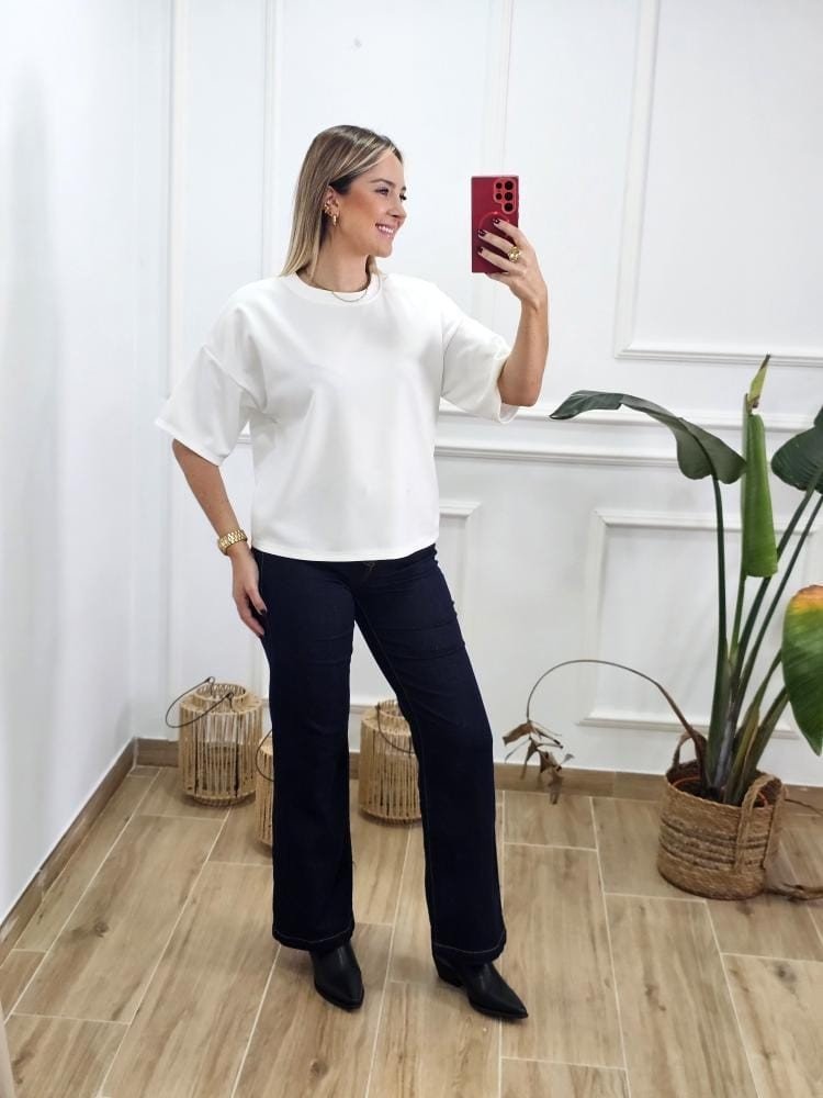 Camiseta en tejido de viscosa y poliéster. Contiene cuello redondo y manga corta. Talla única y en varios colores.
