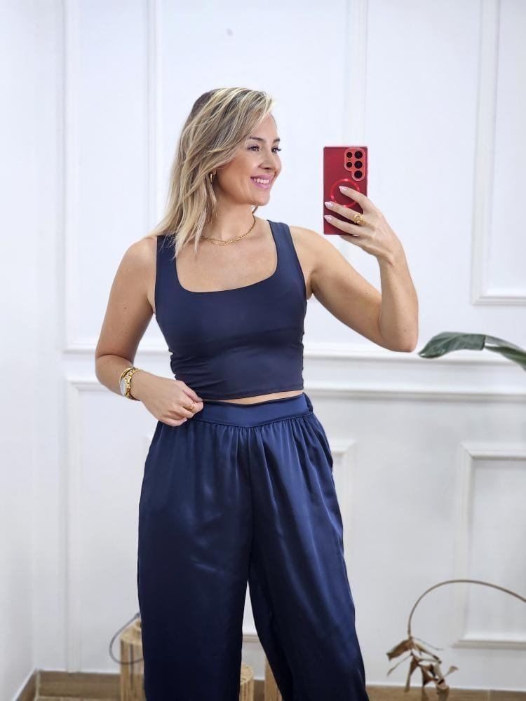 Top en tejido de licra. Contiene escote cuadrado. Asilla ancha. Talla única y en varios colores.