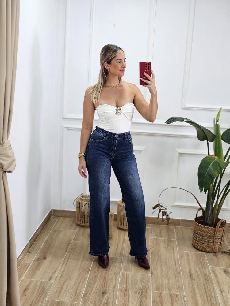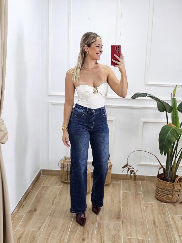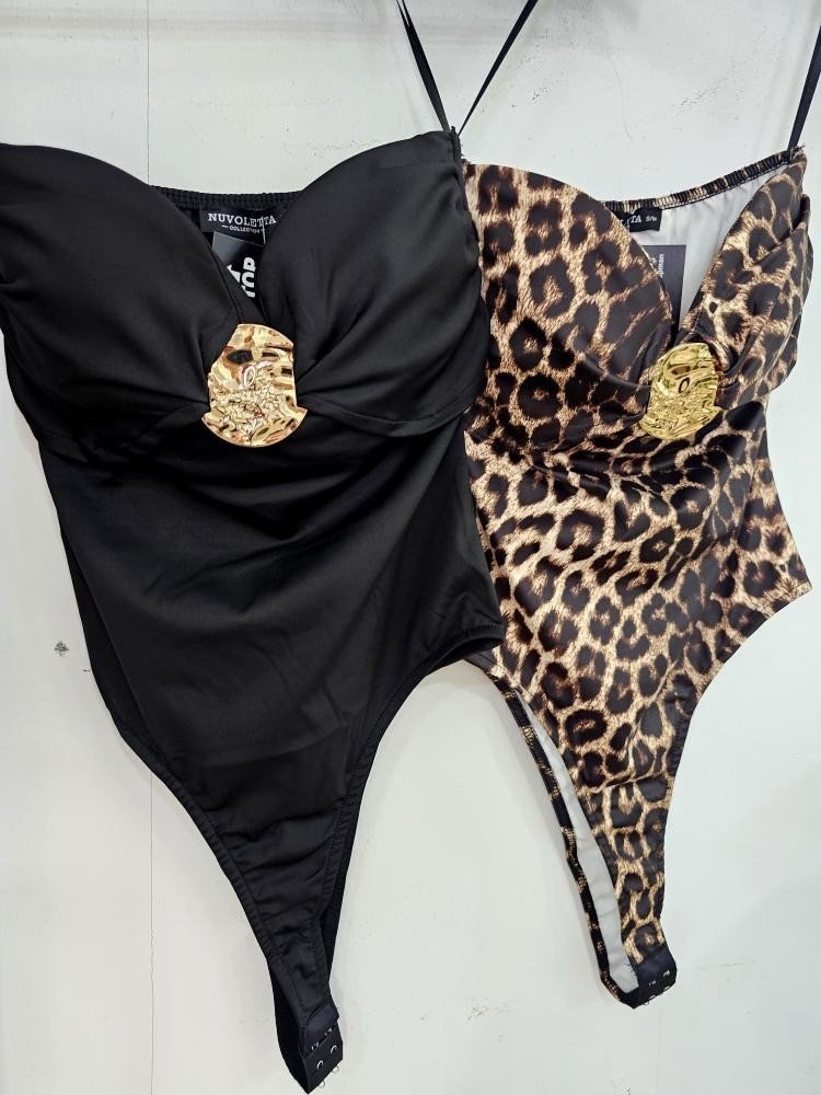 Body en tejido de elastano de palabra de honor. Contiene corchete en la zona baja de la prenda. Contiene hebilla de metal dorada en la zona del pecho. Talla única y en varios colores.