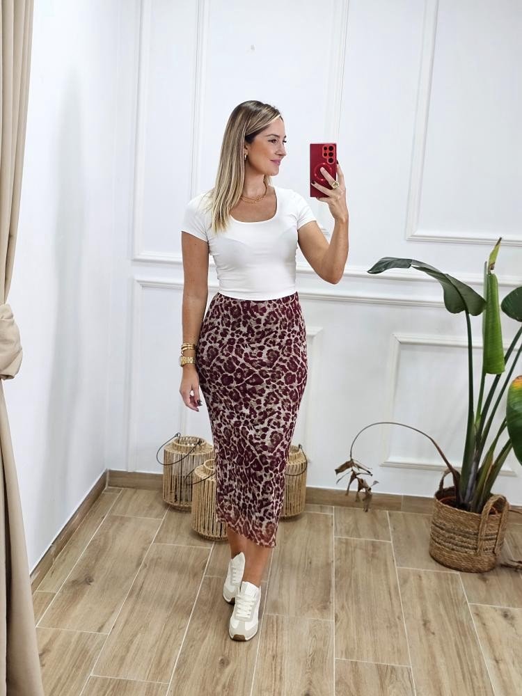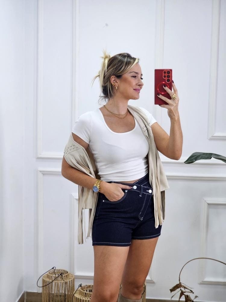 Top en tejido elástico. Contiene escote cuadrado. Detalle de manga corta. Por tallas y único color.