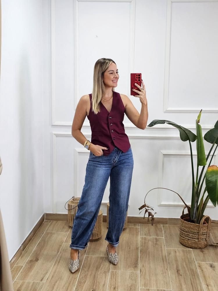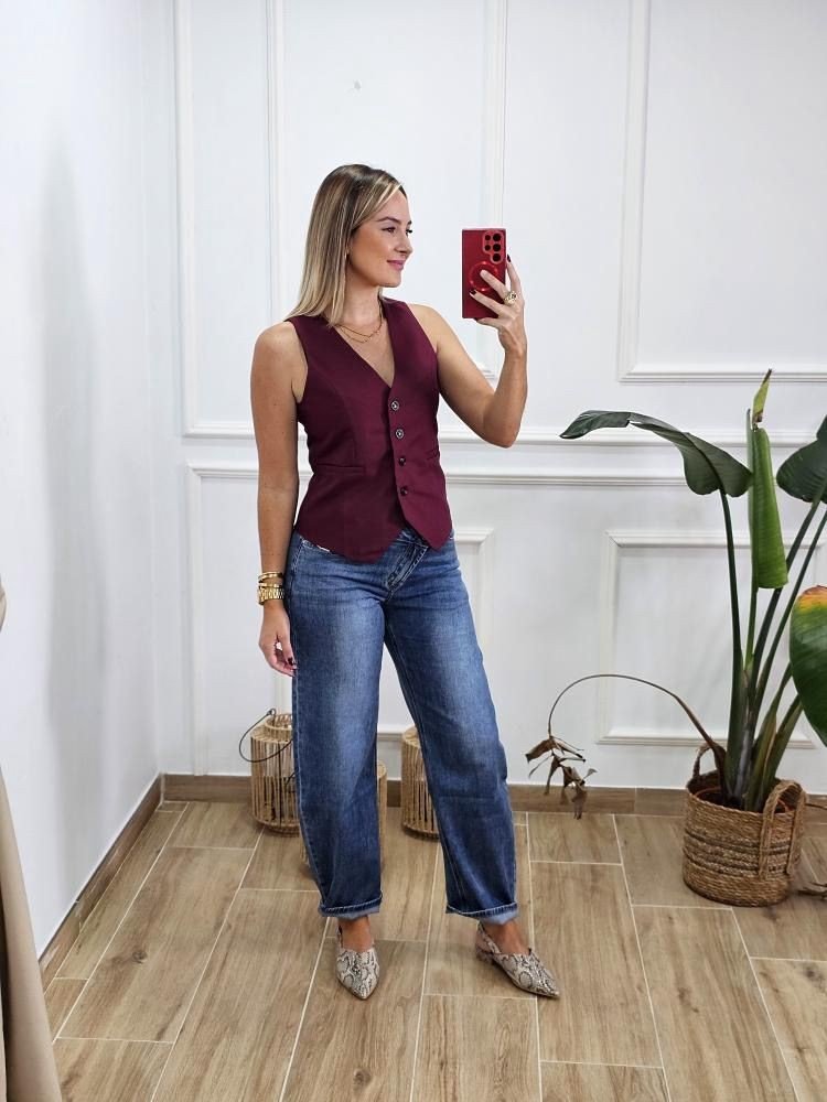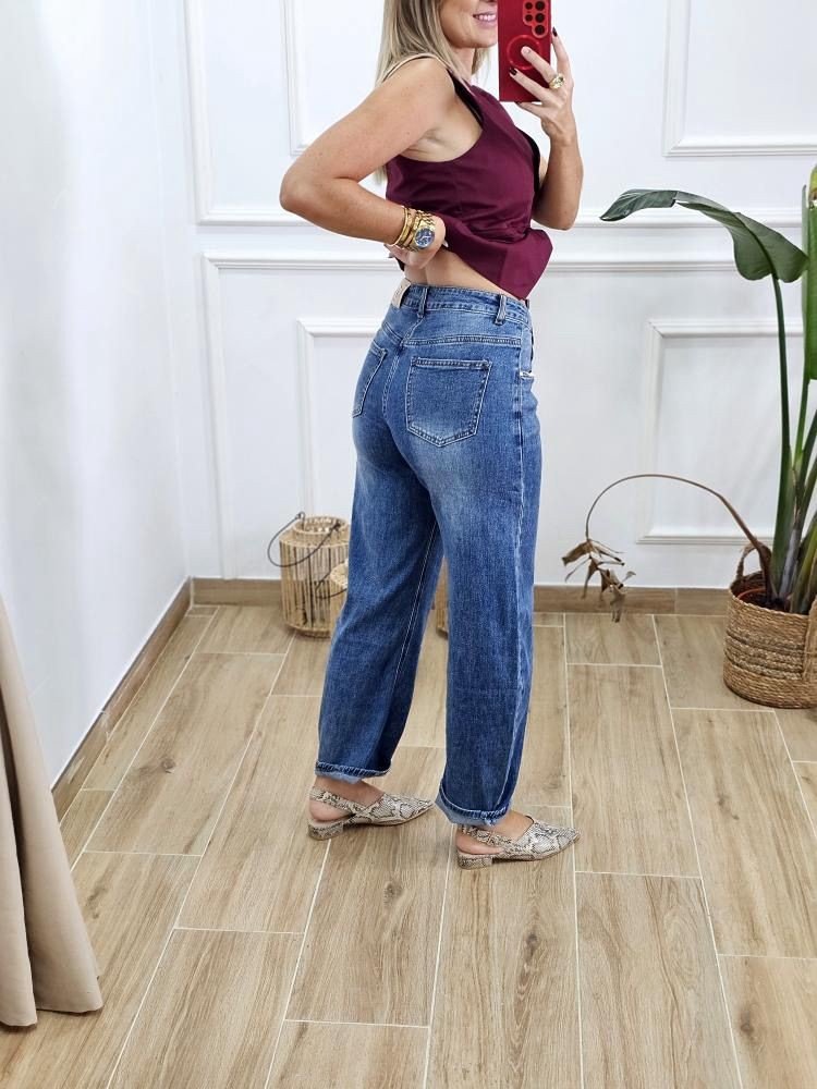 Jeans en tejido denim elástico. Contiene cinturilla cruzada. Bolsillos en la parte delantera y trasera. Cremallera y botón en la zona central. Estilo banana fit. Por tallas y único color. NOTA: la modelo lleva puesta la talla S.