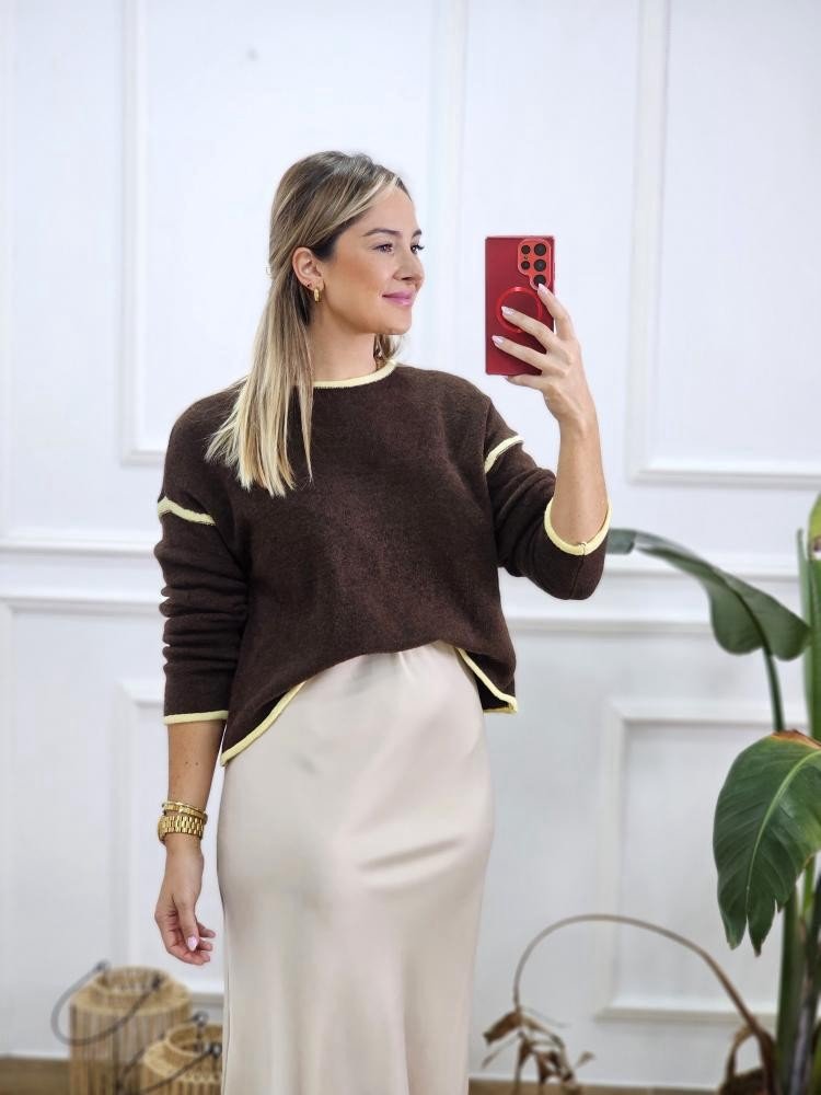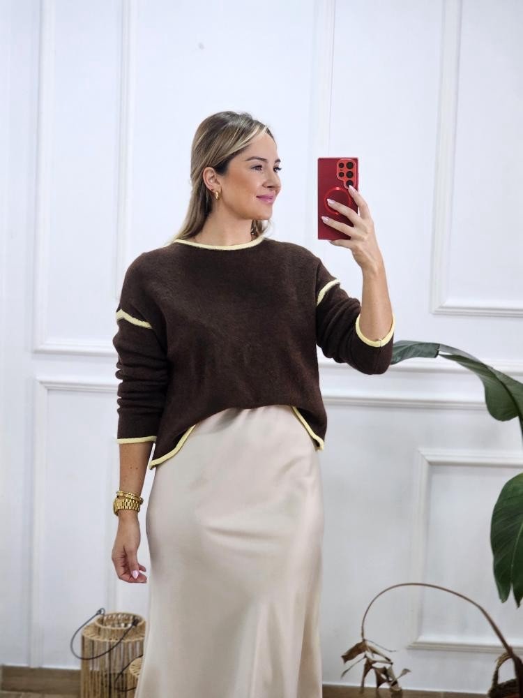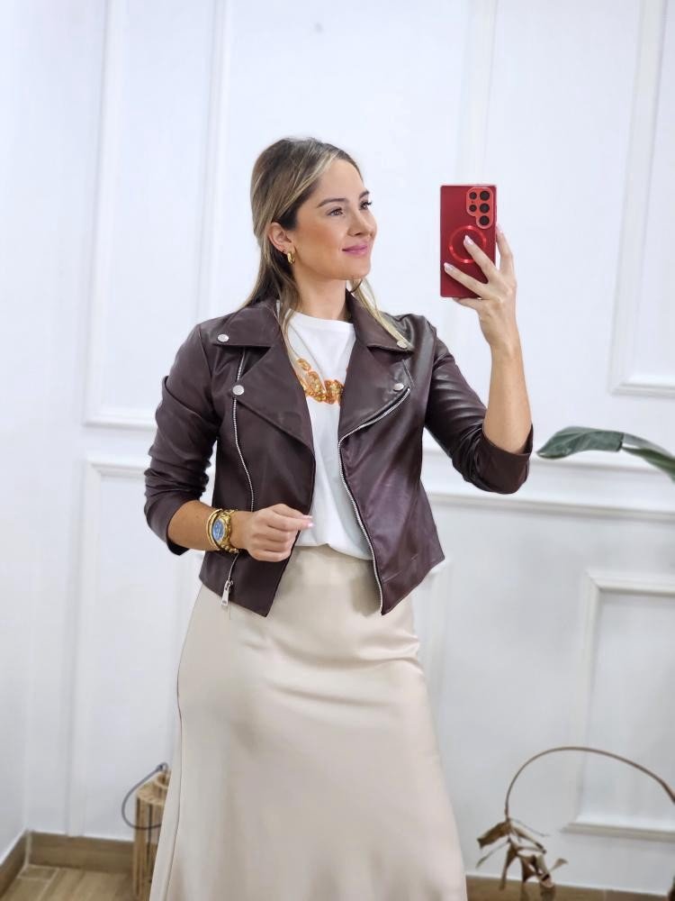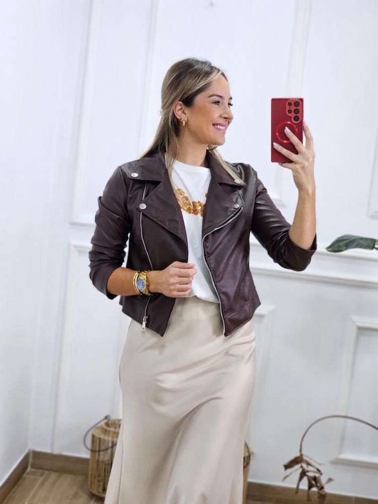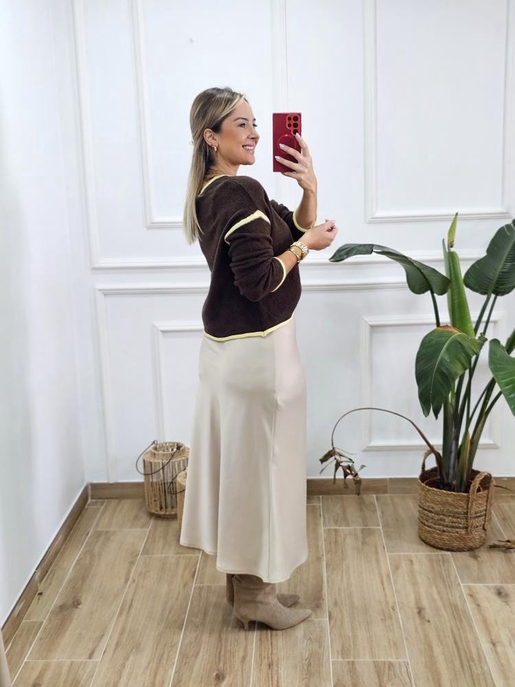 Falda midi en tejido satinado. Elástico en la zona de la cintura. Talla única y único color.