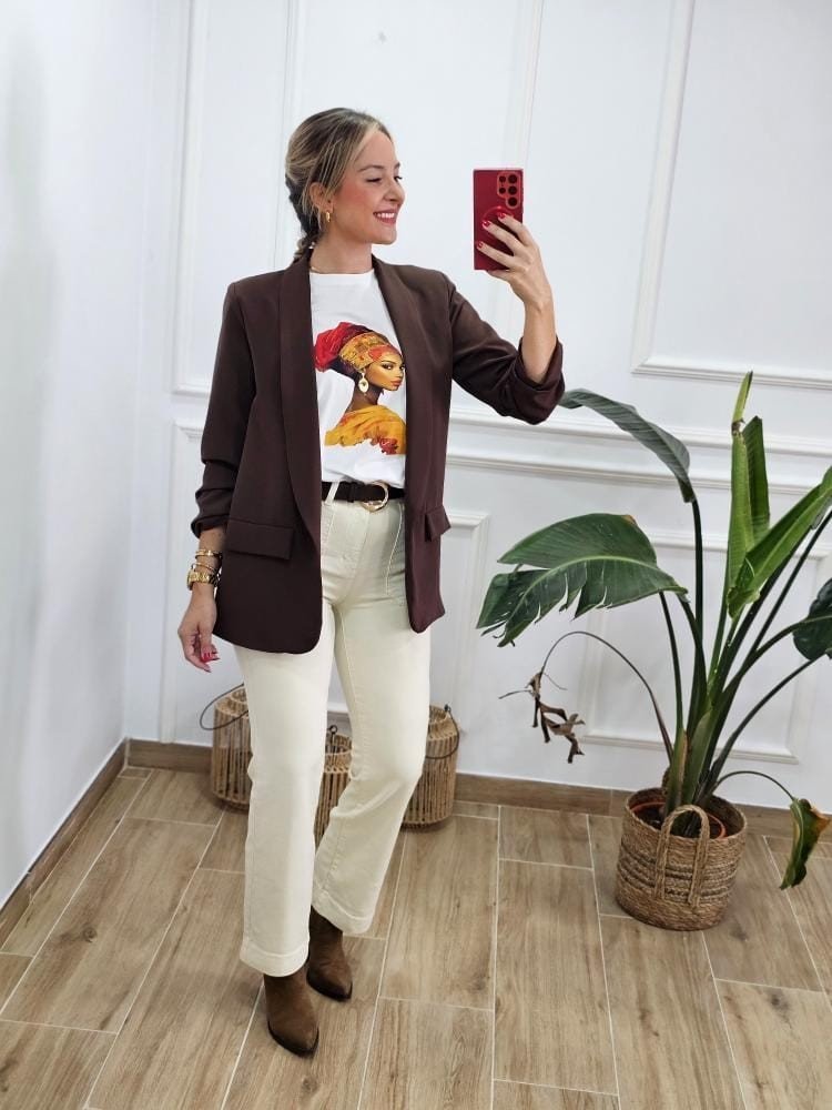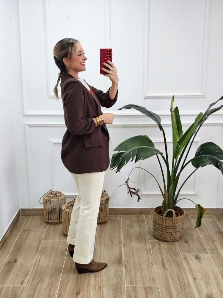 Blazer con manga fruncida, cuello solapado y detalle de falsos bolsillos delanteros. Contiene forro interior. Talla única y único color.
