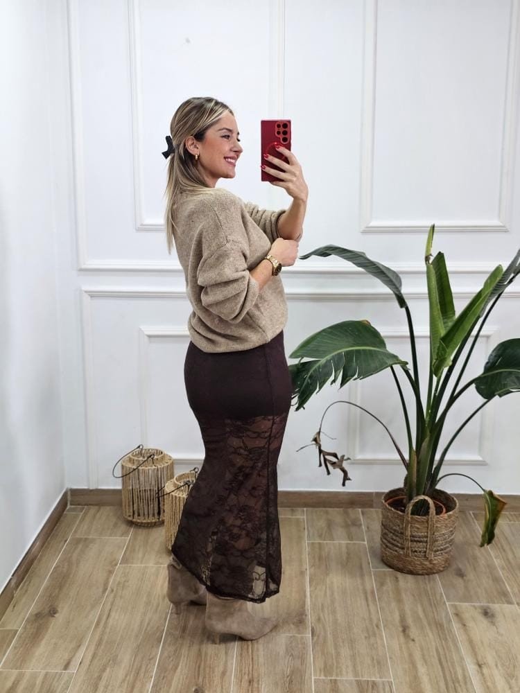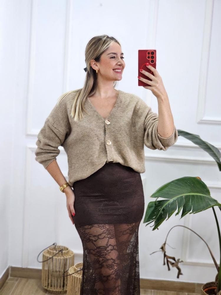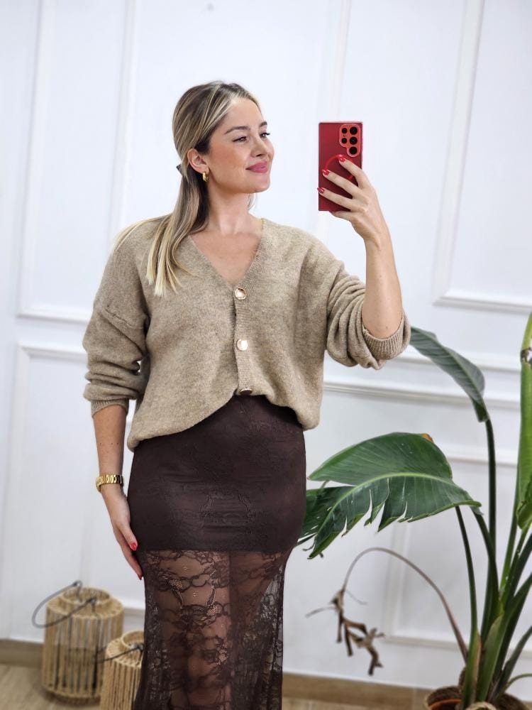 Rebeca en tejido de punto. Contiene botones dorados. Talla única y único color.
