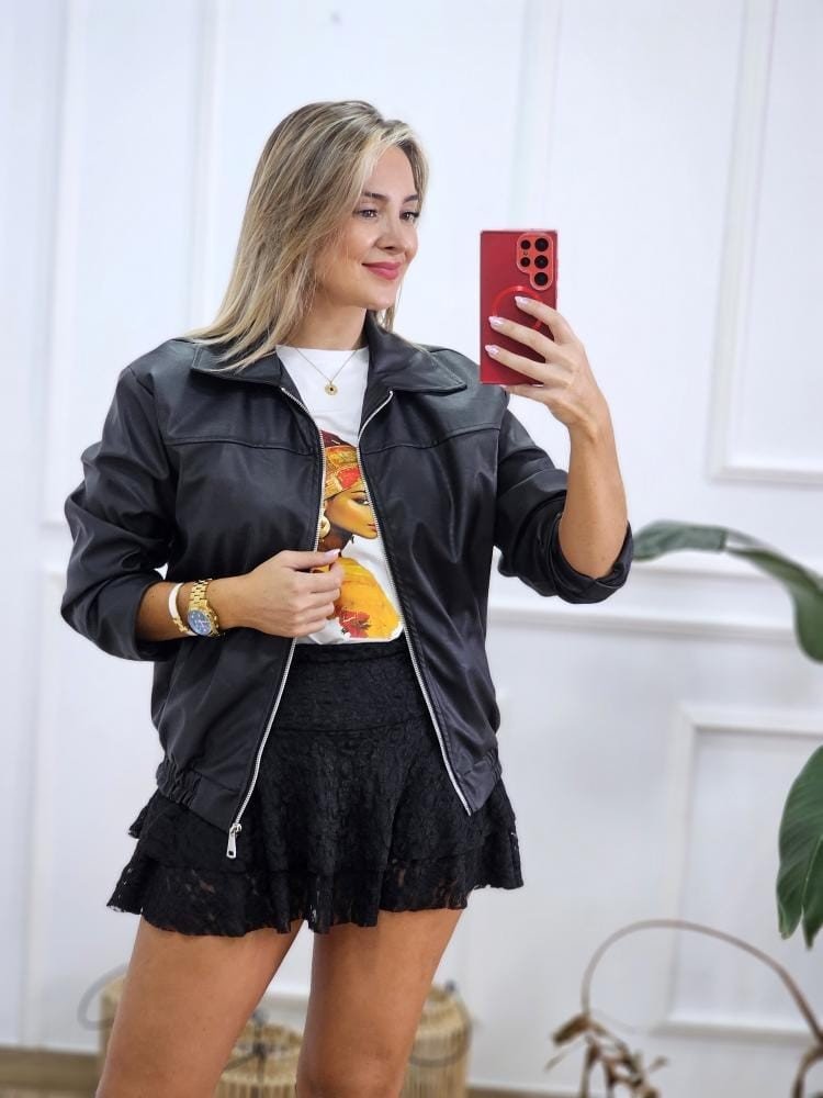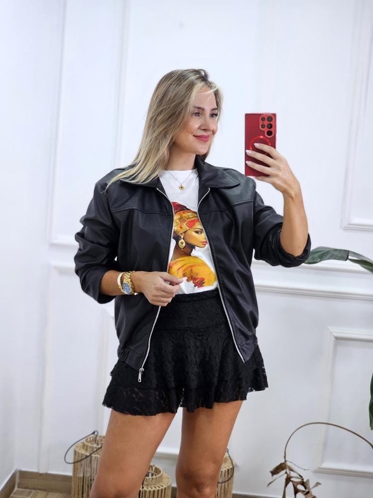 Chaqueta estilo bomber en tejido encerado. Contiene cuello solapado. Detalle de cremallera en la zona central. Bajo con detalle de pretina elástica. bolsillos en los laterales. Contiene forro interior. Talla úncia y único color.