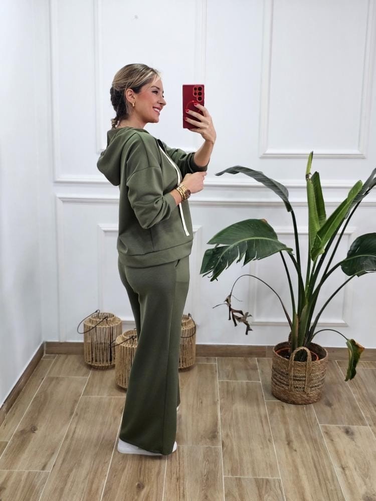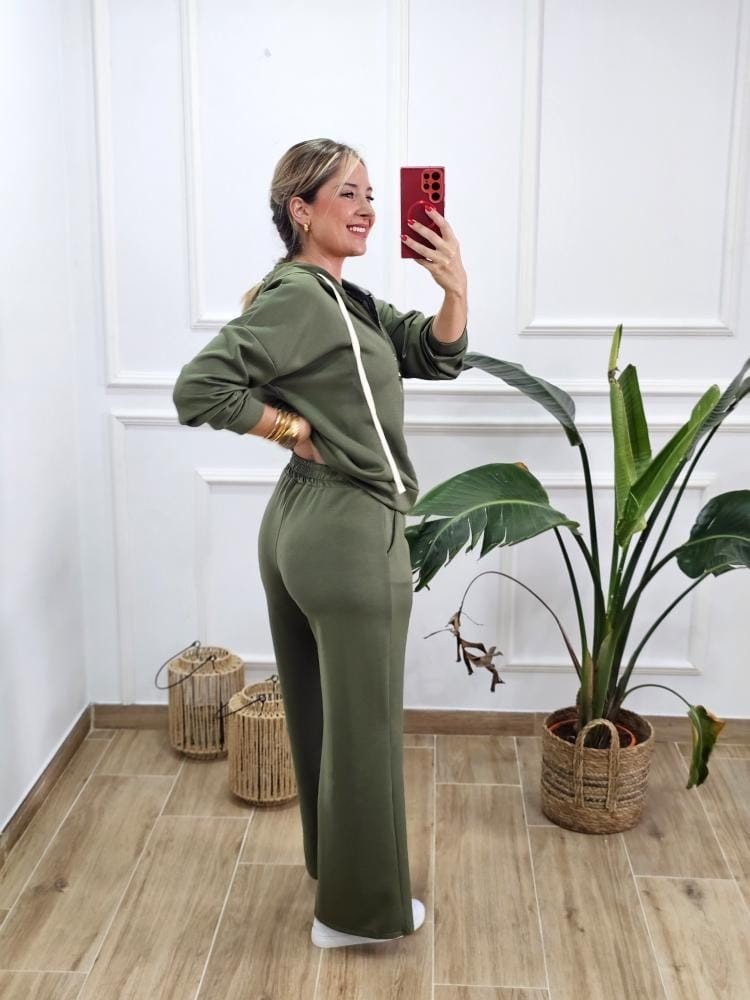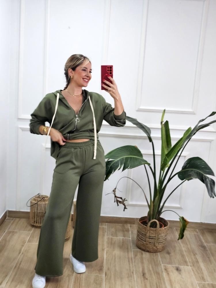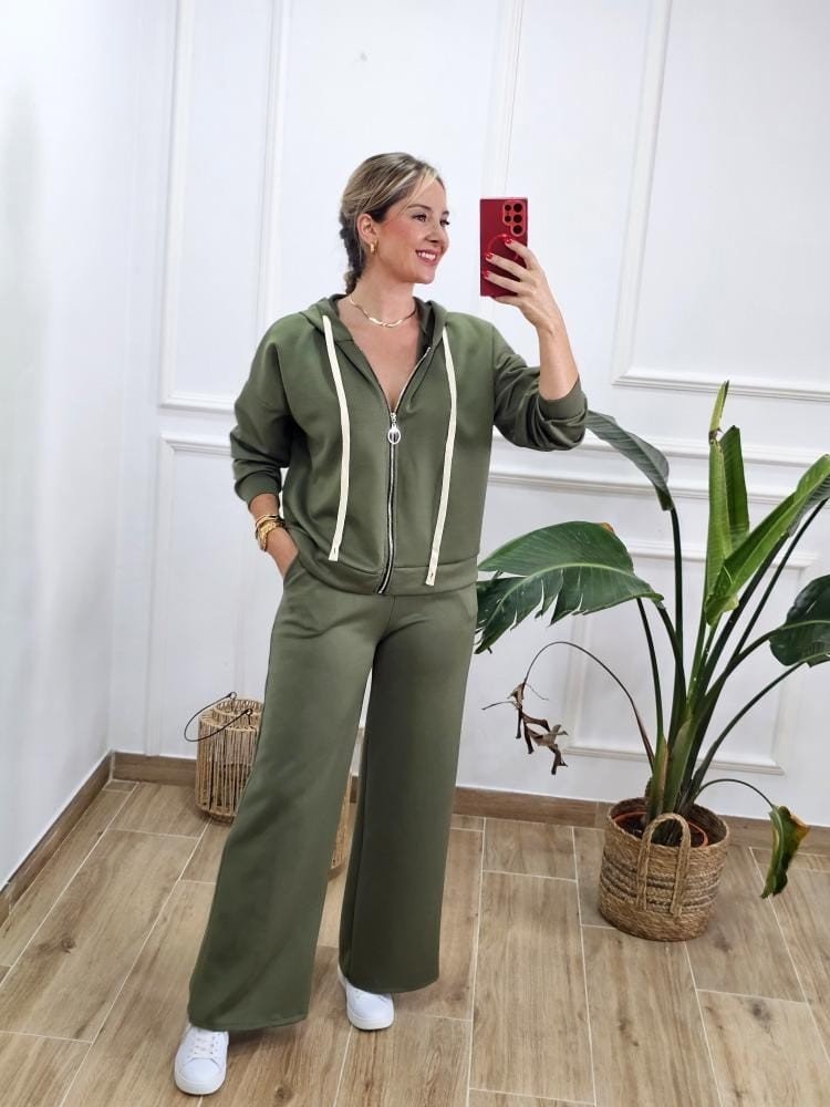 Conjunto en tejido de poliéster con elastano, compuesto de dos piezas. Chaqueta con capucha, cordones para ajustar y cremallera en la zona delantera. Pantalón con elástico en la zona de la cintura y detalle de bolsillos. Talla única y único color.