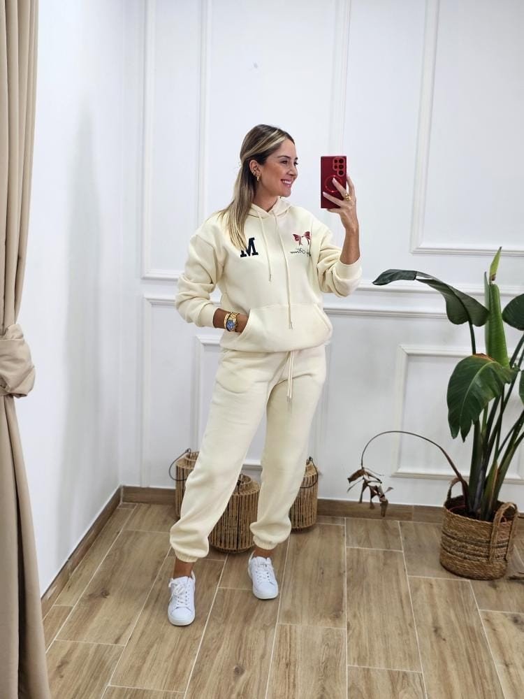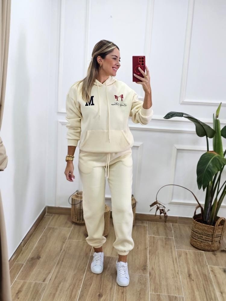 Conjunto de chándal compuesto por sudadera y pantalón en tejido de algodón. Sudadera con det5alle de capucha. Bolsillo canguro en la zona central. Pantalón con detalle de pretina elástica en la zona de la cintura y bajo. Bolsillos en ambos laterales. Interior térmico. Por tallas y varios colores.