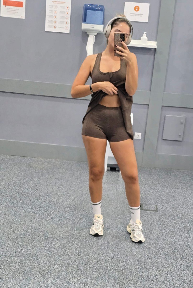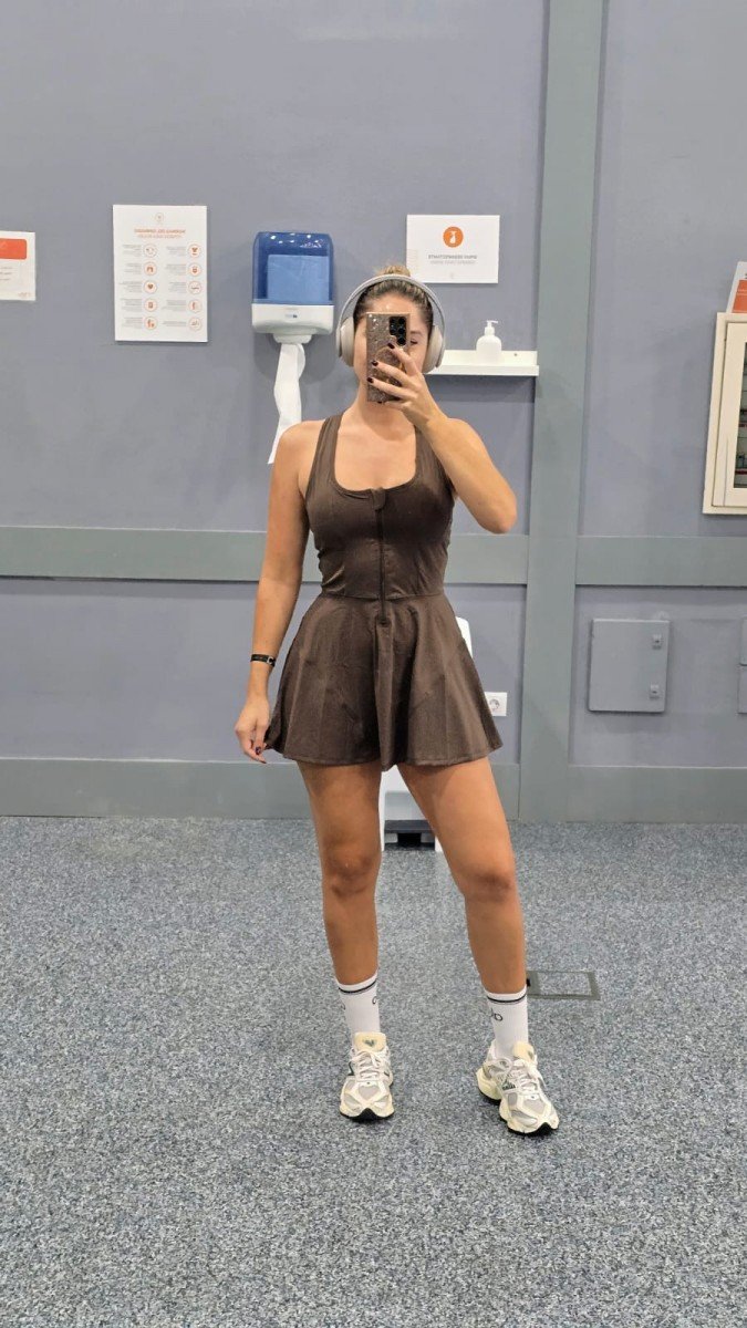 Conjunto deportivo compuesto de 2 piezas. Vestido con espalda nadadora, contiene cocos en la zona del escote y cremallera en la zona delantera. Short con elástico en la zona de la cintura y bolsillos laterales. Por tallas y único color.