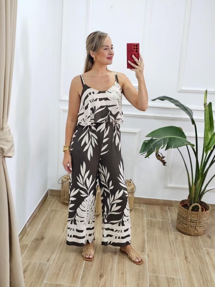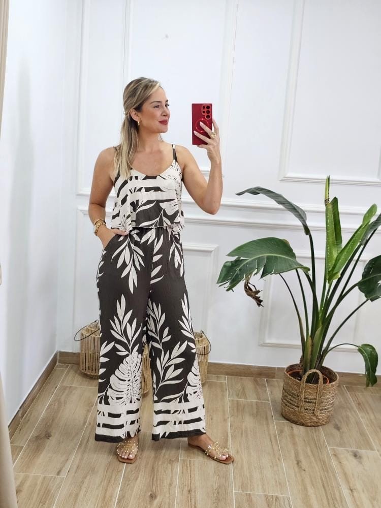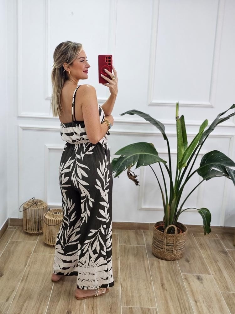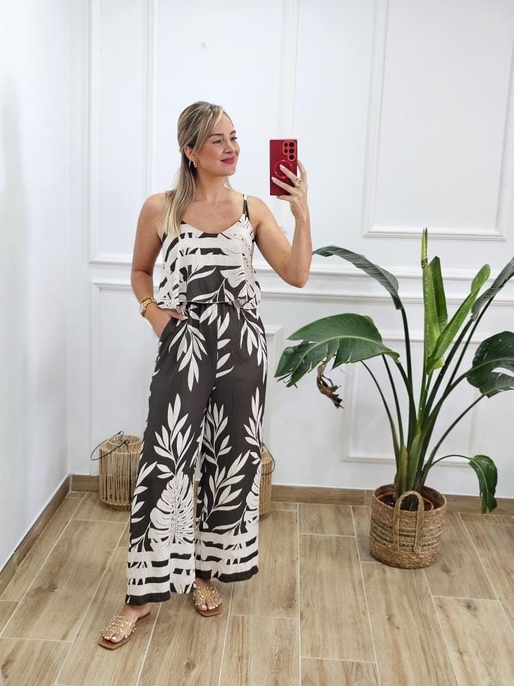 SIN OPCIÓN A CAMBIO NI DEVOLUCIÓN DEBIDO A SU CONDICIÓN DE PRECIO ESPECIAL. Mono bajo estampado de asillas finas. Volante en la zona del pecho y bolsillos en ambos laterales. Talla única y único color.